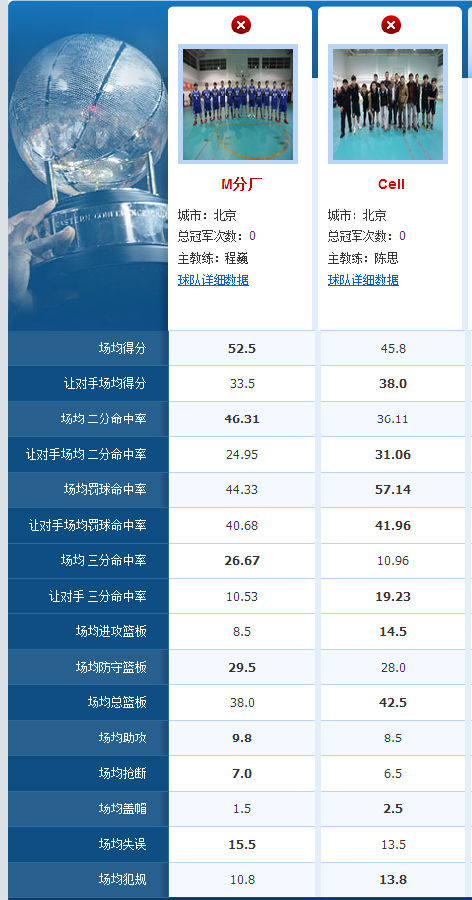 两队数据对比