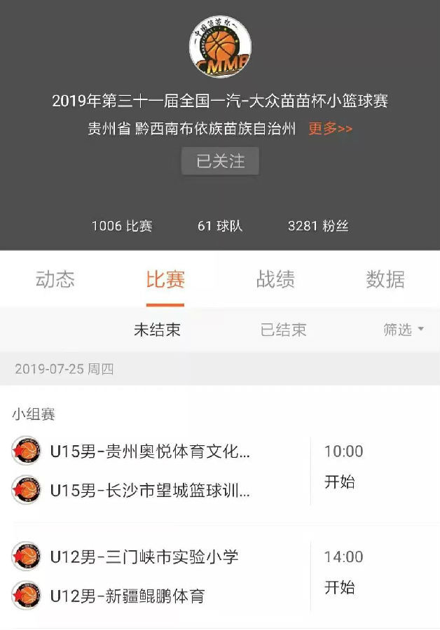 我奥篮球为“苗苗杯”提供全程赛事数据服务,上图为我奥篮球APP中“苗苗杯”相关赛事专题页