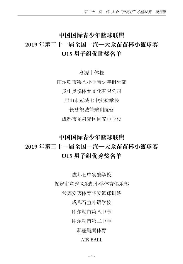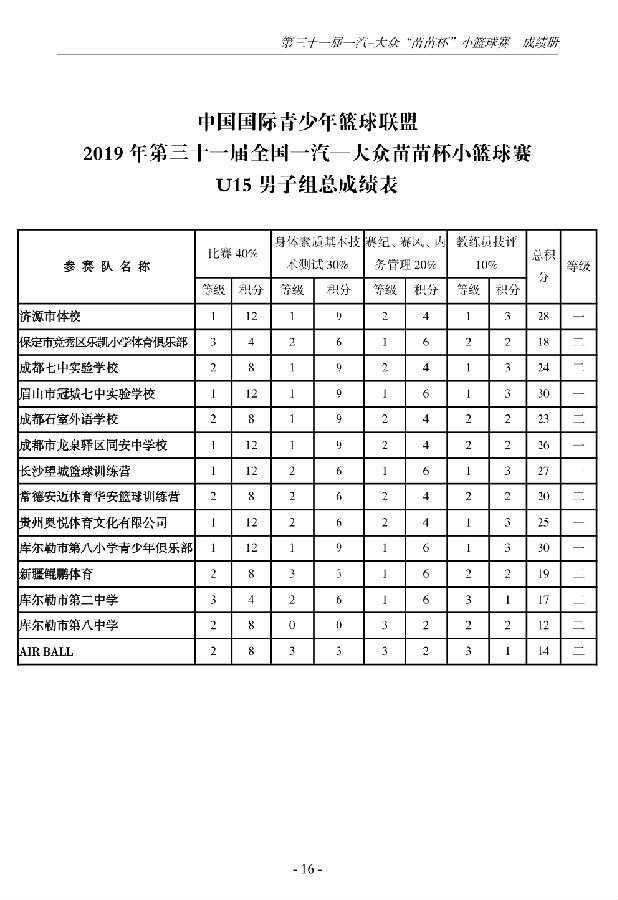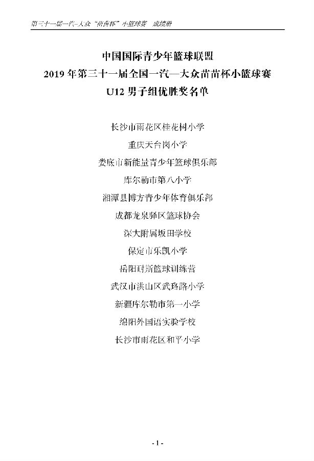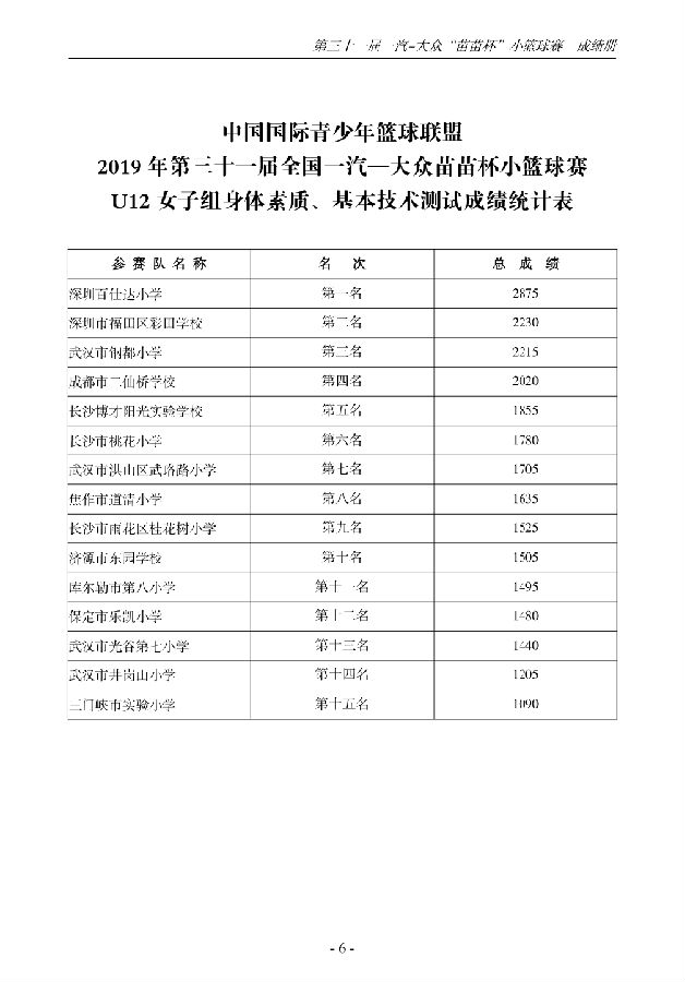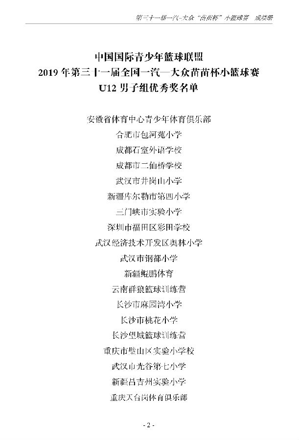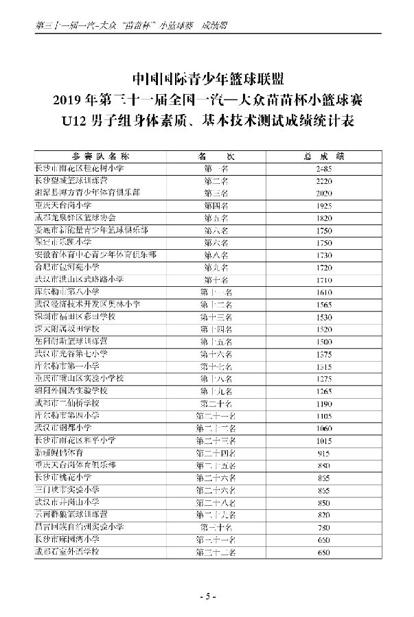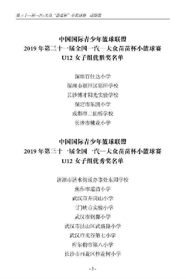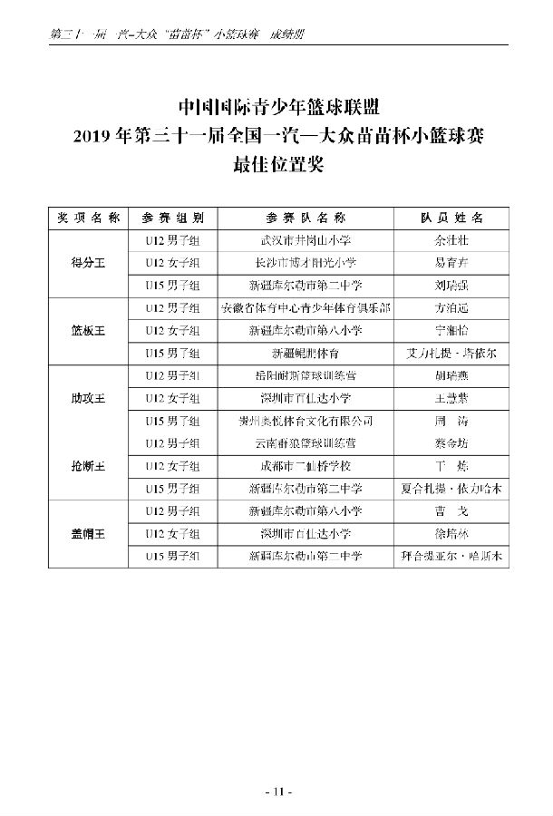 第三十一届一汽-大众“苗苗杯”小篮球成绩册