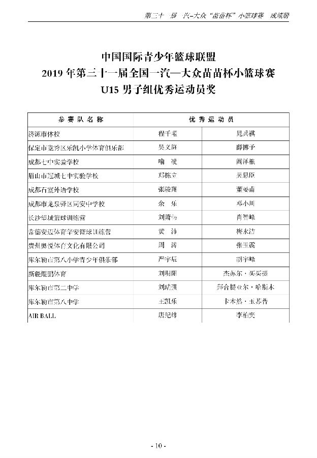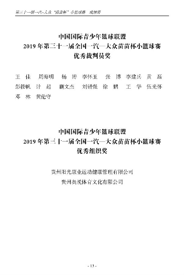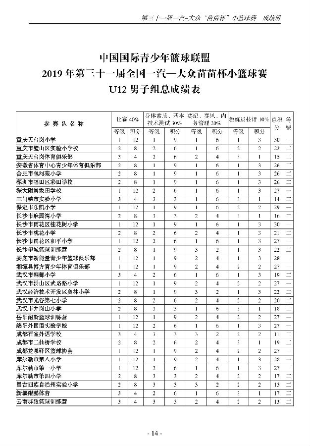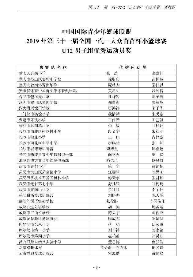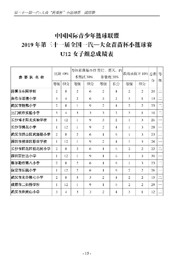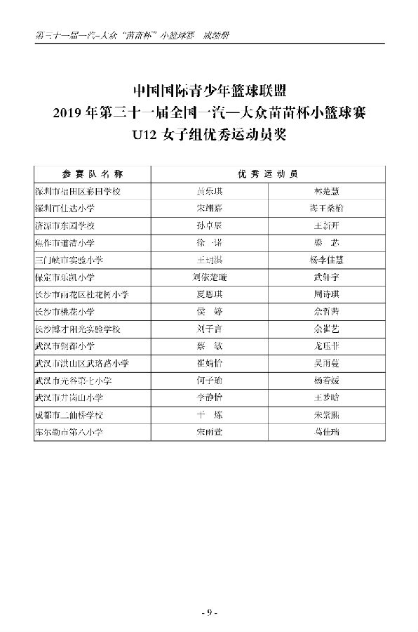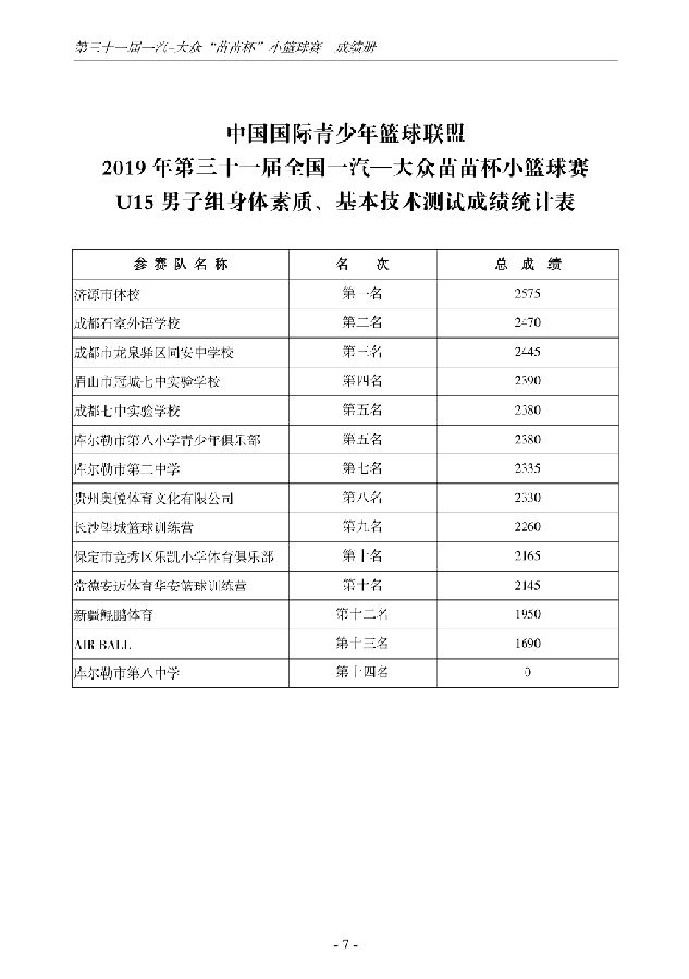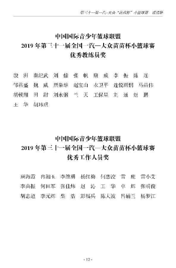 第三十一届一汽-大众“苗苗杯”小篮球成绩册